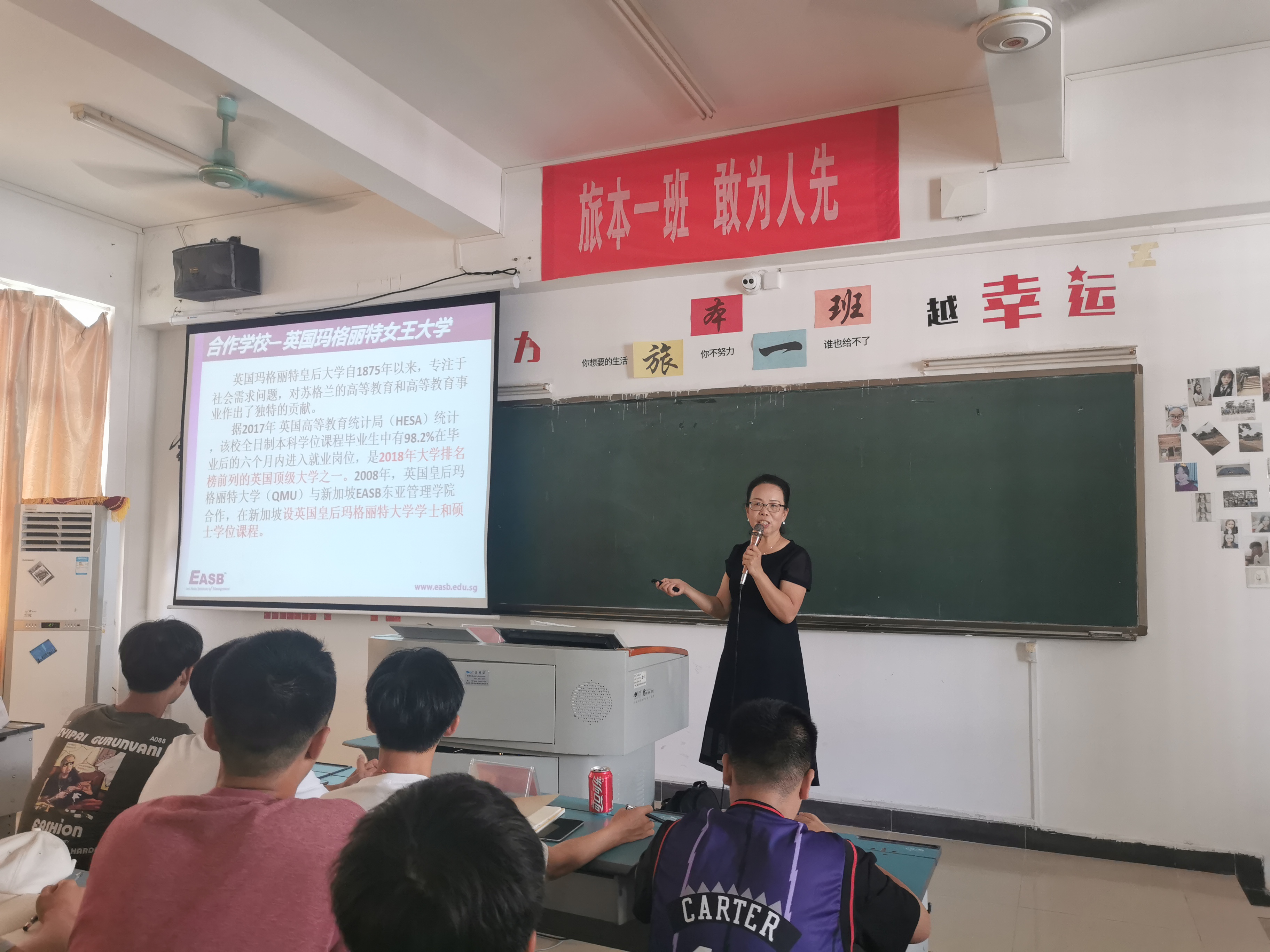 然后海南铭冠教育文化公司黄秀香女士向大家讲述了新加坡的情况,包括它的发展情况、人均收入,又从语言文化、管理理念、生活安全等多个方面向大家讲述了到新加坡留学的优势。且东亚管理学院文凭被英国澳大利亚和新西兰等三十多所大学认可,新加坡职工平均总费用在35万人民币左右,其中学杂费和外语培训费占一半,余下为食住费用。其中,黄秀香女士也提到了有关就业这方面的问题,通过她的讲解,让同学对新加坡留学以及对EASB东南亚学院留学专升本项目有了更深入的了解。